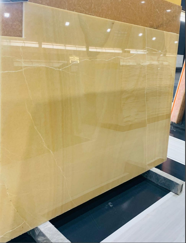 Mango Onyx is a luxurious, translucent onyx marble named for its warm, golden-yellow colors and intricate, wavy patterns that resemble a ripe mango fruit. It is a sought-after natural stone prized for its beautiful appearence.