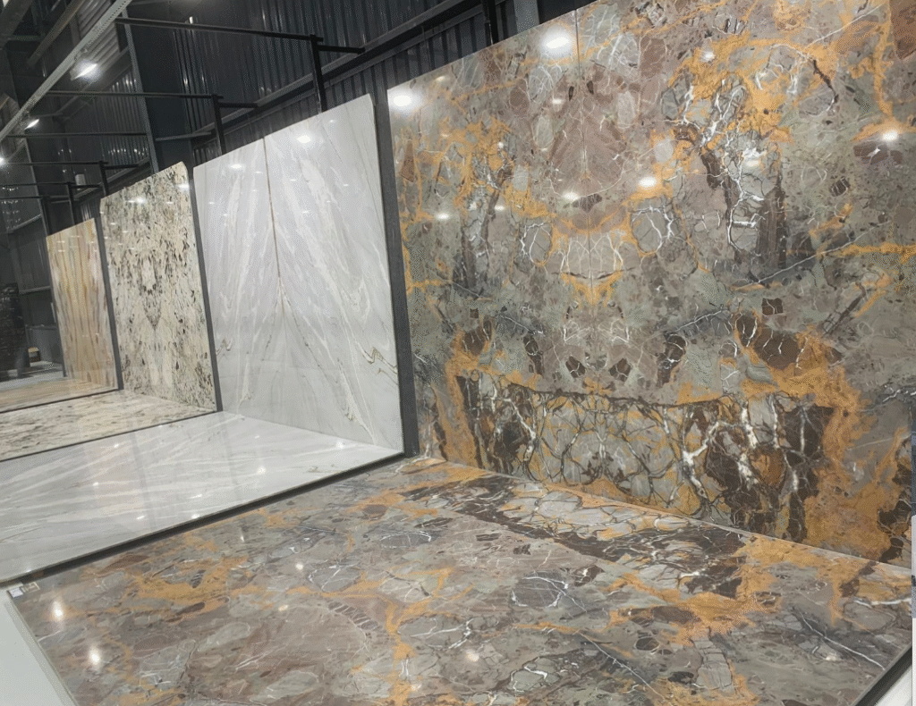 At our showroom, you’ll find a wide range of marble varieties — including Italian, Indian, Onyx, Travertine, and Composite marbles — displayed in full slabs, tiles, and mock setups. You can compare different finishes, patterns, and colors side by side to make the perfect choice for your project.