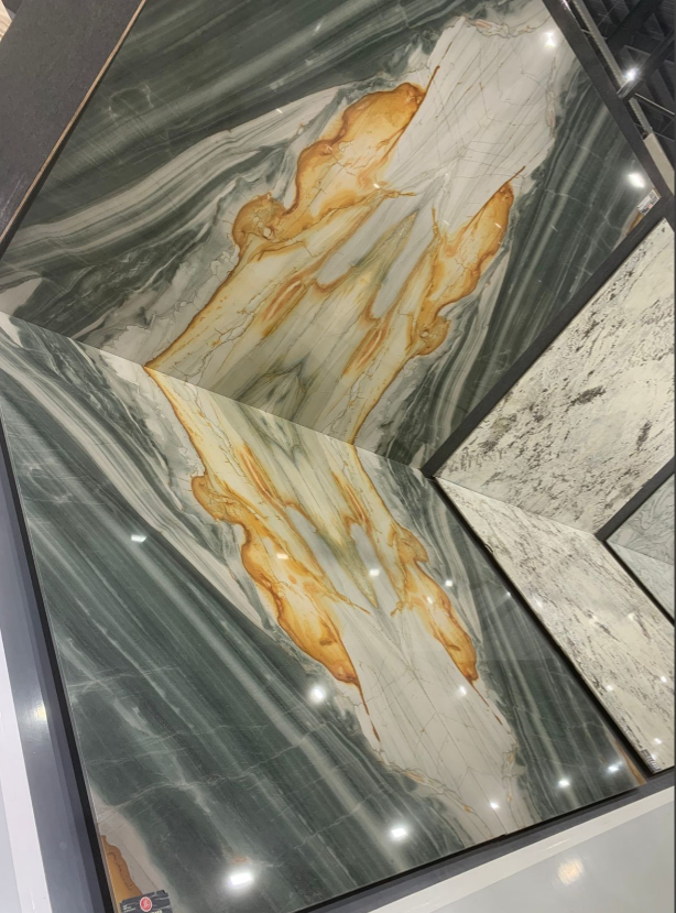 It is a natural stone from Brazil with a yellow background and occasional green streaks, valued for its beauty and durability. It is extremely hard, heat--resistant, and suitable for a variety of applications, both indoors and outdoors, such as countertops, walls, and flooring.
